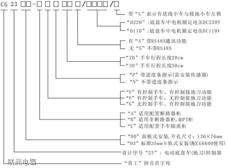 如用戶想訂購一臺面板式控制器全功能的型號:CG2300-AEP20S/D110。若底盤車電機(jī)電壓不寫額定電壓則默認(rèn)為DC220V。用戶如有特殊要求請另行說明。