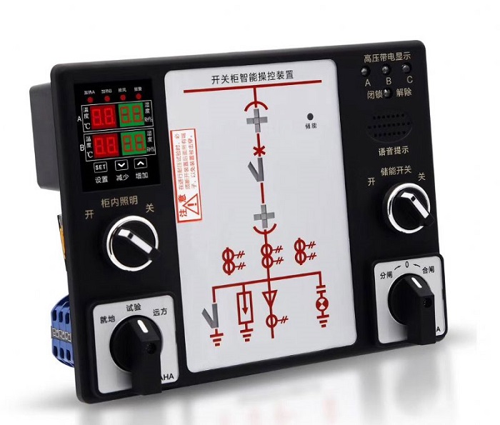 產品具有一次回路動態模擬指示,溫濕度控制功能,二路溫濕度復合型傳感器輸入,二路溫度數顯二路濕度數顯,起控點可設置,溫濕度負載斷線報警功能等,高壓帶電顯示及閉鎖功能,語音防誤提示功能,遠方/就地、分/合閘、儲能、照明等開關操作功能,預分預合閃光指示,操作、顯示于一體的多功能產品