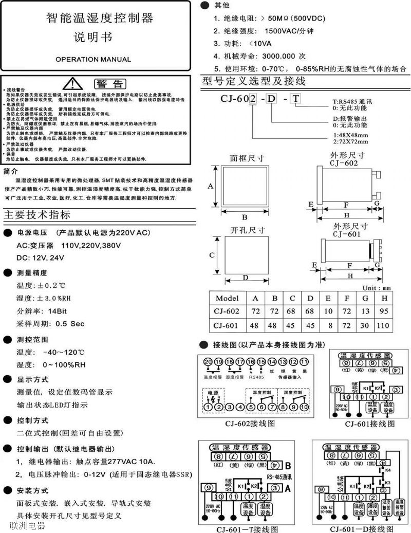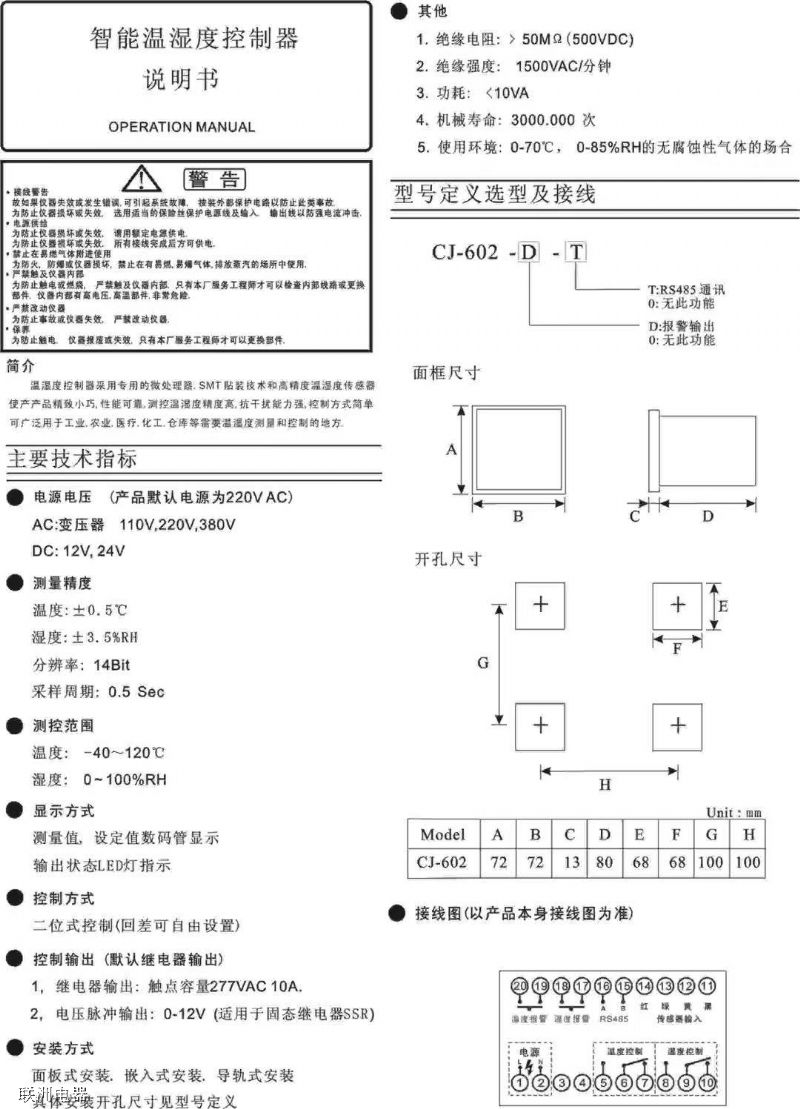 ●測控范圍:溫度:-40~100℃  濕度:0~100%H