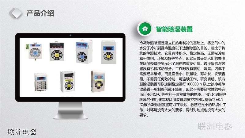 智能除濕裝置普遍用以對濕度要求較高的電控柜、環網柜、開關柜、高壓柜、控制柜、端子箱、配電箱、電氣控制箱、箱式變電站等各種工業電力和通訊設備,