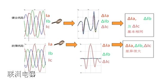而且發生故障瞬間,電網電流發生突變,故障區域三相電流值變化很大,而非故障健全區域的三相電流值變化很小,波形近似。